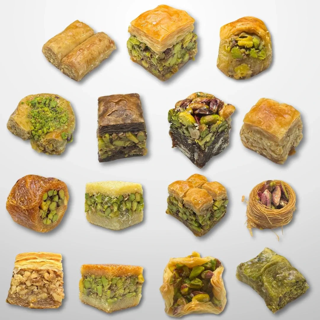 Wij maken onze lekkernijen met alleen de beste ingrediënten, zoals hoogwaardige ghee en Antep-pistache.